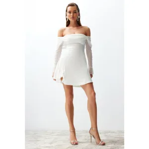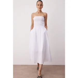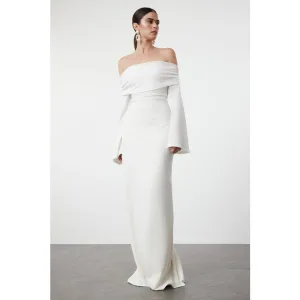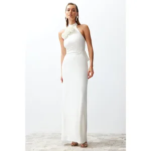 Steen Detailed Satijn Avondjurk Wit