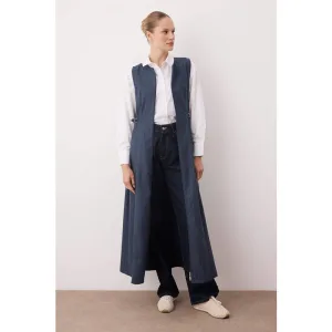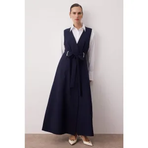 Damesjurken in marineblauw, mouwloos, casual A-lijn model, bescheiden model