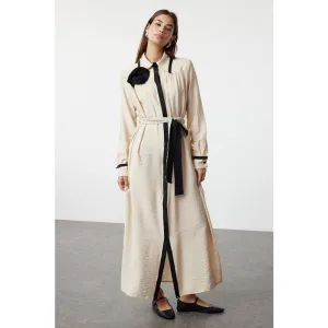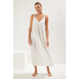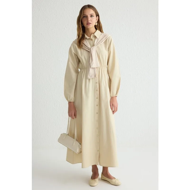 Ecrukleurige, rechte maxi-jurk voor dames, lang, geschikt voor dagelijks gebruik of als hijab.