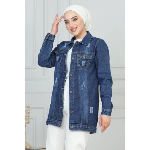 Denim Jasje With Laser Zak Detail Donkerblauw