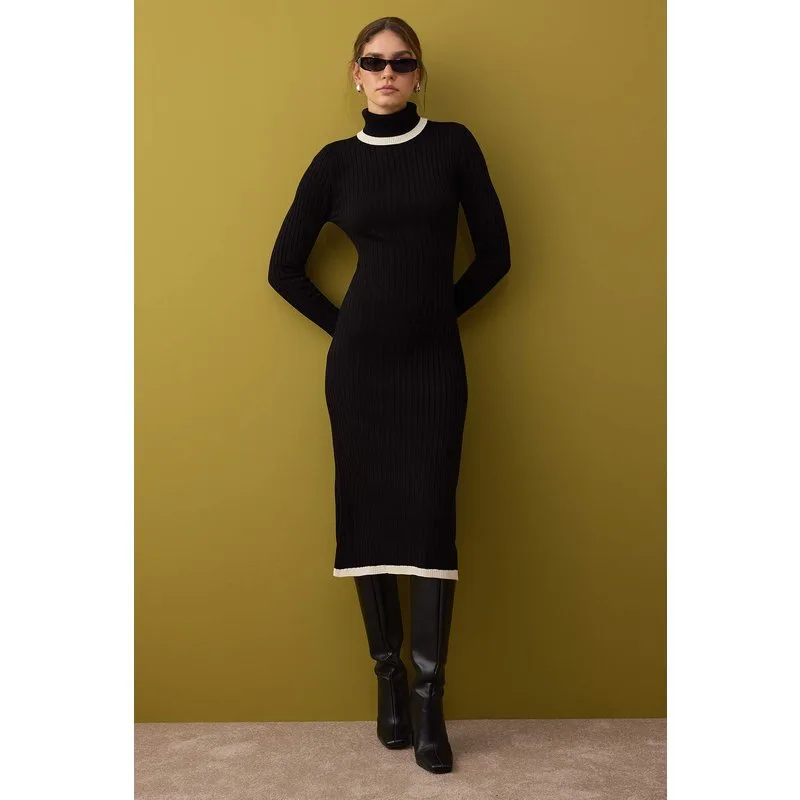 Midi-jurk voor dames met kleurblokken, lange pasvorm, casual model