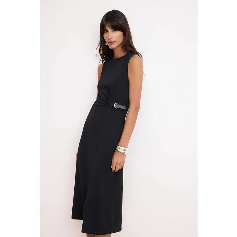 Effen mouwloze midi-jurk voor dames, stijlvol en aansluitend voor de avond