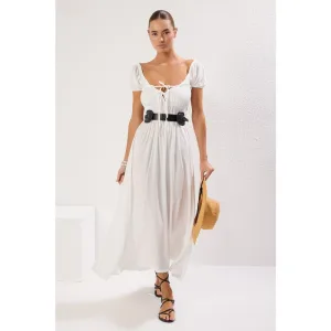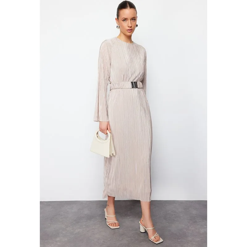 Ecrukleurige, rechte midi-jurk voor dames, lang, casual/dagelijks, slank model