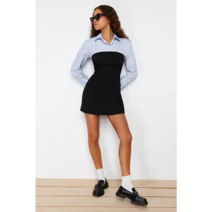 Marineblauwe platte mini-jurk voor dames, geschikt voor overdag en ’s avonds.