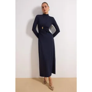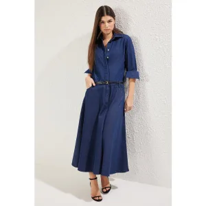 Marineblauwe effen maxi lange casual oversized jurk