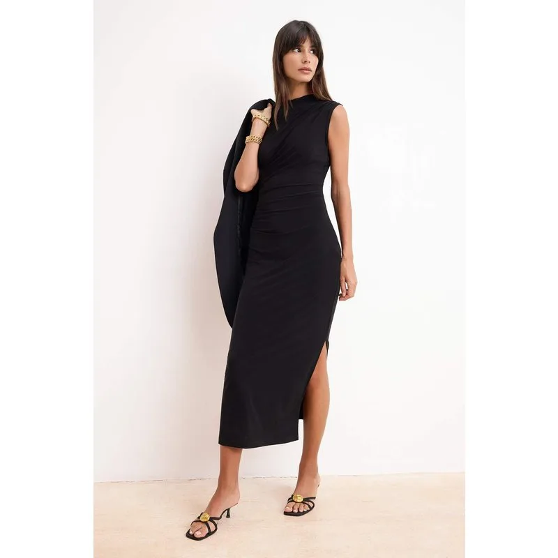 Platte, mouwloze, nauwsluitende midi-jurk voor dames
