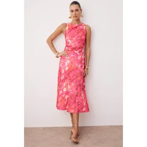 Roze abstracte midi-jurk zonder mouwen voor dames, stijlvolle/nachtjurk