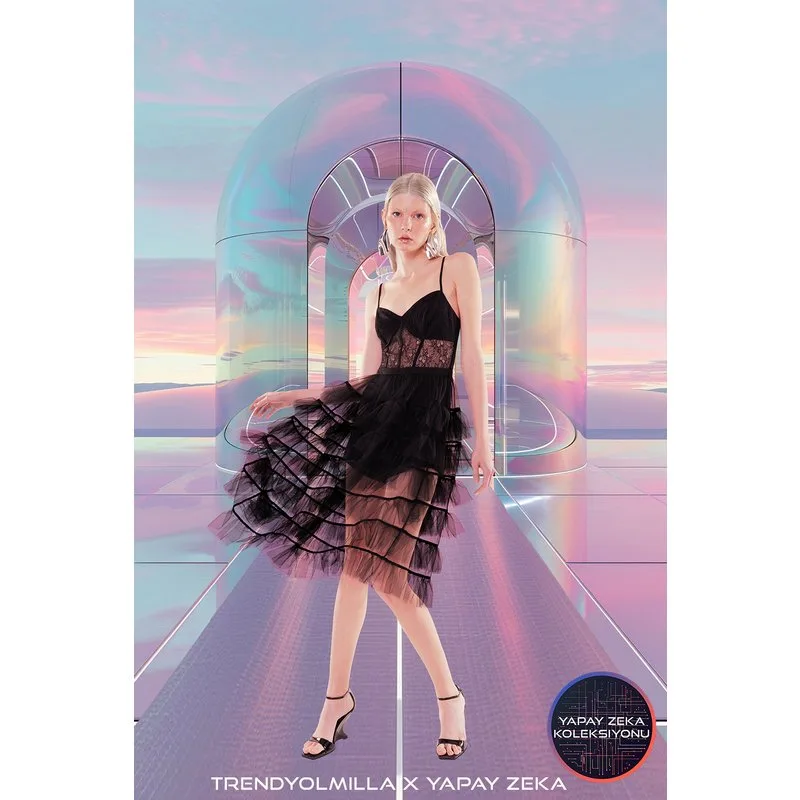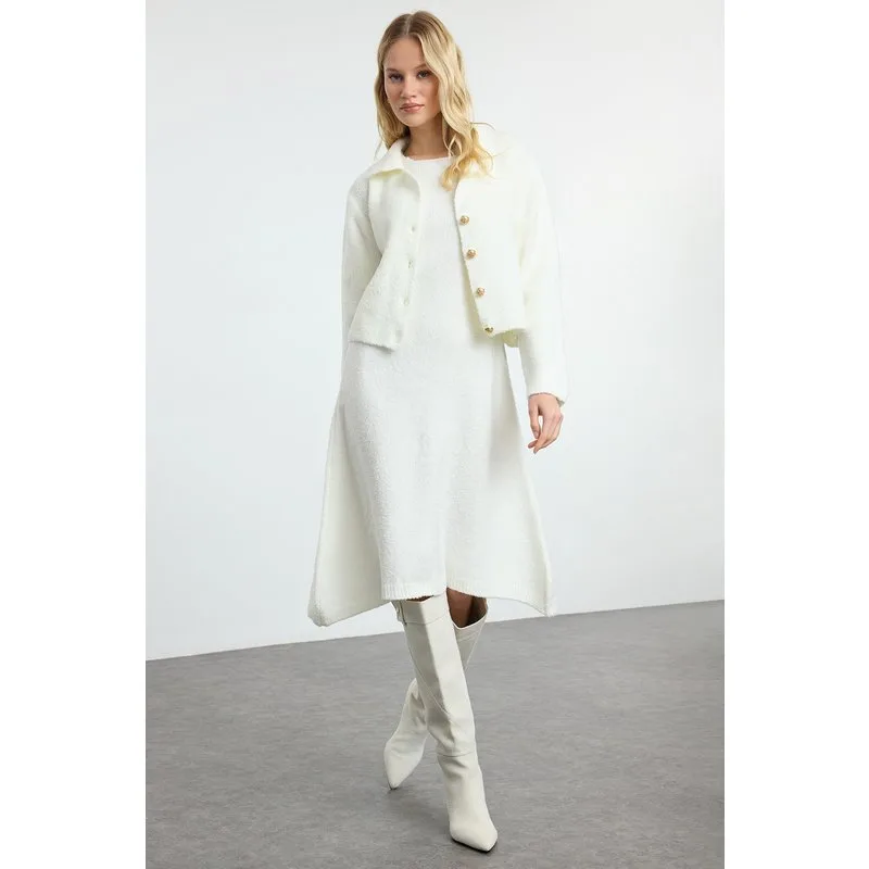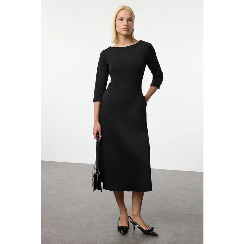 Dames Overhemd Kraag Detailed Half stolp Thin Seasonal Cold Yarn Gebreide kleding Jurk Zwart