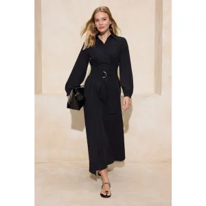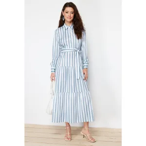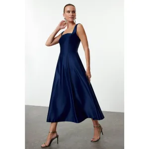 Marineblauwe rechte midi cocktailjurk met wijde pasvorm