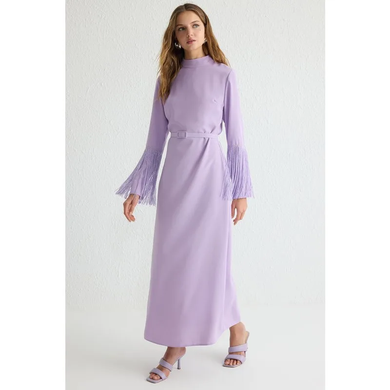 Paarse bescheiden avondjurken