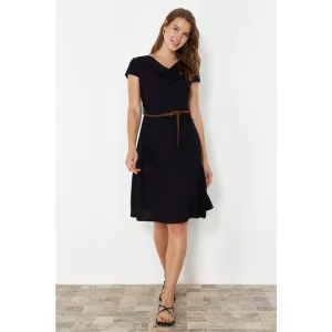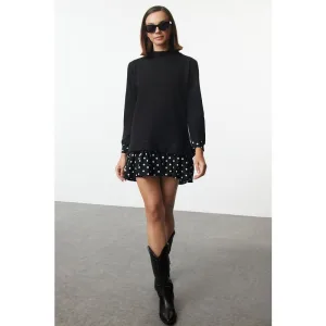 Dames Geplooide Rok, Ribfluweel, Thin Seasonal Cold Yarn Gebreide kleding Jurk, Zwart