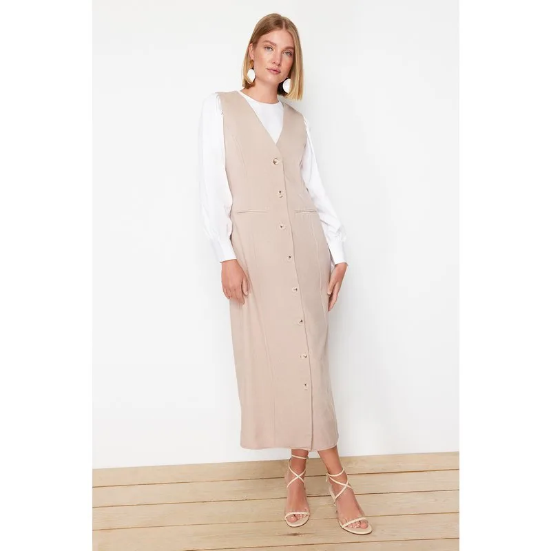 Ecru effen mouwloze casual jurk voor dames