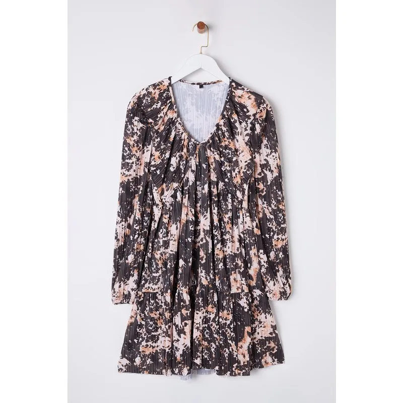 Abstracte mini-jurk voor dames, lang, casual en slank model.