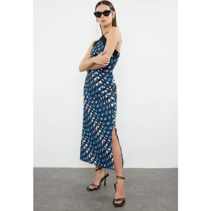 Maxi-jurken voor dames met geometrische en mosterdprint, spaghettibandjes, geschikt voor avond- of dagelijks gebruik, normale pasvorm.