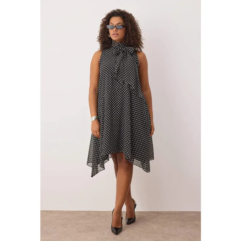 Curve Dames Midi Mouwloze Casual A-lijn Jurken met Polka Dot-print, Plus Size