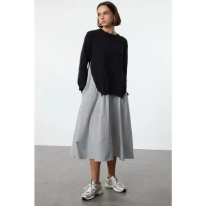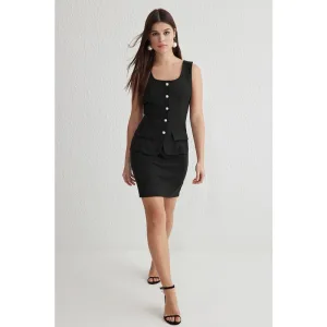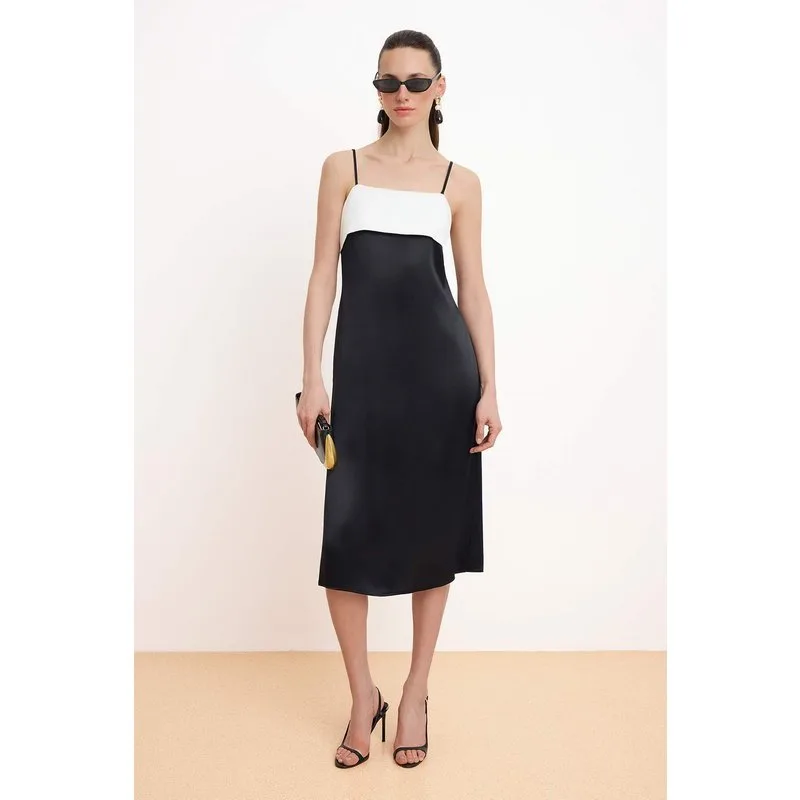 Zwarte mouwloze midi-jurk met kleurblokken voor dames