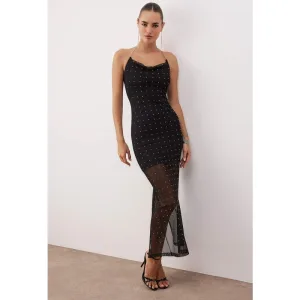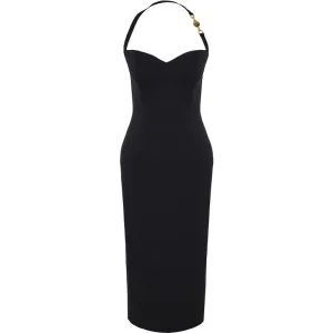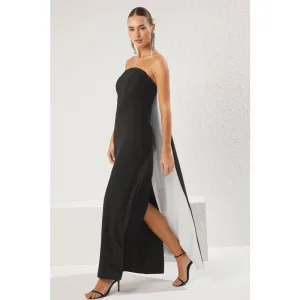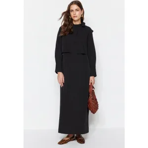 Zwarte, getailleerde maxi-jurk voor dames
