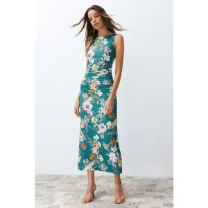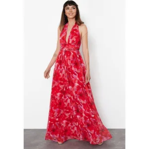 Mouwloze maxi-jurk met bloemenprint voor dames, geschikt voor overdag en ’s avonds. Nauwsluitende bodycon-jurk.