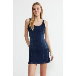 Marineblauwe rechte maxi-jurk voor dames, aansluitende strandjurk