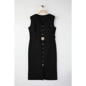 Curve Dames Rechte Midi Mouwloze Bodycon Jurk voor Dag/Nacht Plus Size