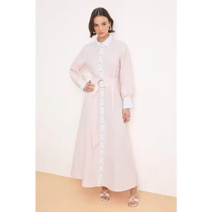 Roze platte maxi-jurk voor dames, lange casual/dagelijkse A-lijn jurk met hijab
