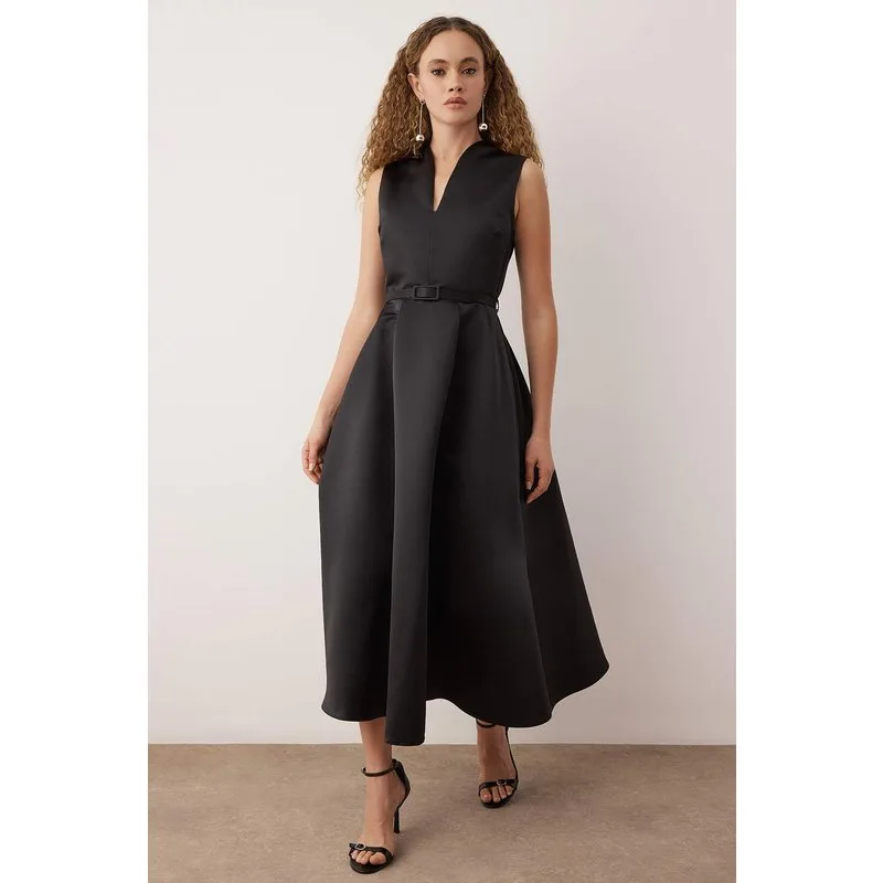 Damesjurk, rechte midi-lengte, getailleerde cocktailjurk