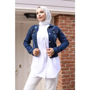 Geknopt Denim Jasje Donker Denim