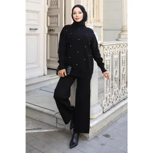 Steen Detailed Cuff Gebreid Jurk Zwart