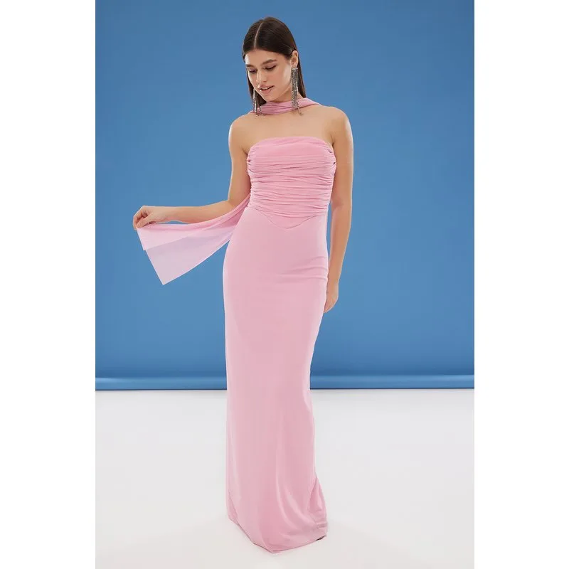 Rosa effen maxi-jurk zonder mouwen voor dames, geschikt voor afstuderen/gala, slanke avond- en galajurk