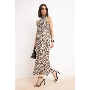 Maxi-jurk voor dames met dierenprint, mouwloos, geschikt voor avondjes uit of dagelijks gebruik.