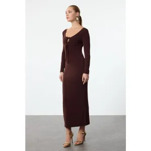 Knoop Detailed Gebreid Jurk Khaki