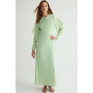 Damesjurk, effen groen, lang, stijlvol/comfortabel, bescheiden, avondjurk