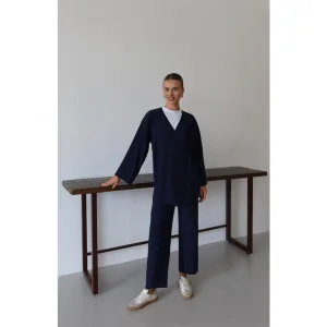 Kreukellook Textured Kimono Pak Marineblauw