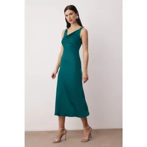 Dames groene rechte midi mouwloze chique/nachtelijke slipjurk