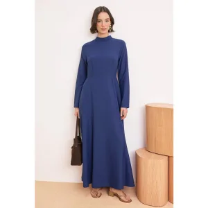 Marineblauwe platte maxi-jurk voor dames met hijab