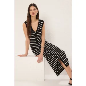 Gestreepte midi-jurk voor dames, lang model, casual/dagelijks, slank model