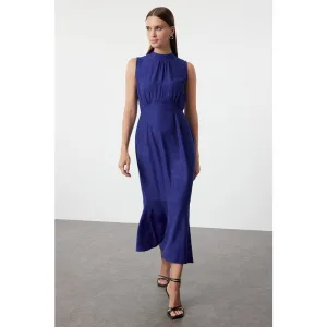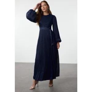 Damesjurk in donkerblauw, effen kleur, lange, elegante, normale pasvorm, bescheiden mode, avondjurk