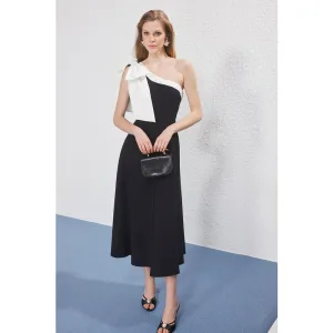 Stijlvolle/getailleerde midi-jurk voor dames met kleurblokken, zonder mouwen.