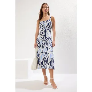 Geometrische midi-jurk voor dames met spaghettibandjes, casual model
