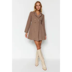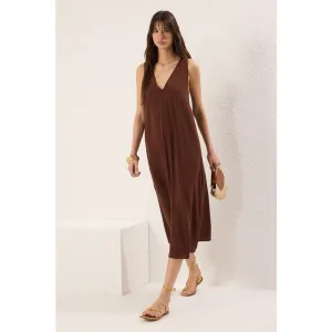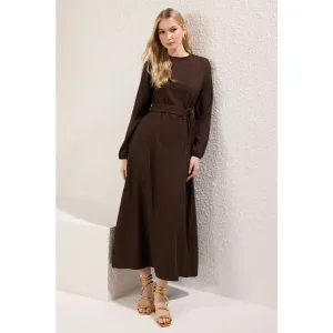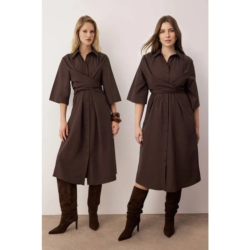 Damesjurk in bruin, effen kleur, midi-lengte, casual overhemdjurk