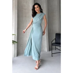 Groene, rechte, mouwloze maxi-jurk voor dames, chique/avondjurk, bodycon model