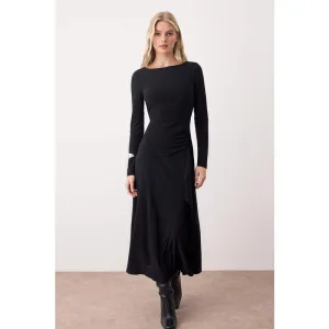 Dames Unifarben Midi Lange Cocktail Bodycon Jurk