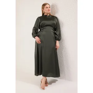 Groene, rechte midi-jurk voor dames, geschikt voor overdag en ’s avonds.