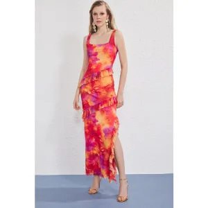 Zeer kleurrijke, rechte maxi-jurk voor dames, stijlvol en nauwsluitend, geschikt voor avondjes uit en afstuderen.