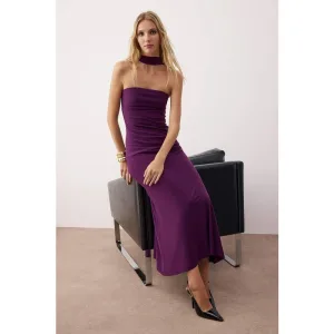 Paarse platte maxi-jurk zonder mouwen voor dames, geschikt voor cocktails en skaters