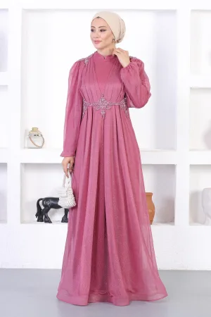 Met stenen Verbrand Met patroon Avondjurk, Oud roze