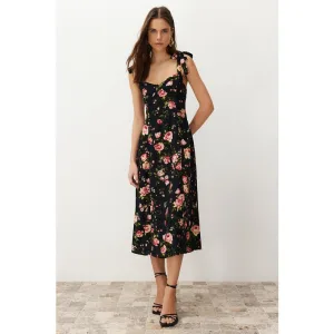 Damesjurken met bloemenprint, midi-lengte, spaghettibandjes, casual, normale pasvorm