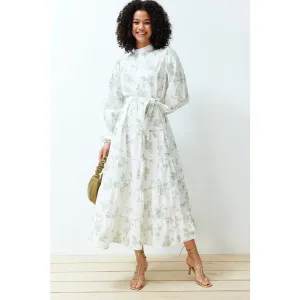 Damesjurken met bloemenprint, lang model, casual, normale pasvorm, bescheiden mode