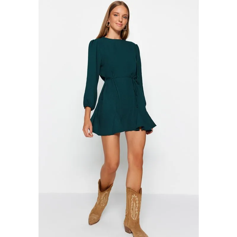 Damesjurken in groen, effen kleur, mini, lang, casual, normale pasvorm