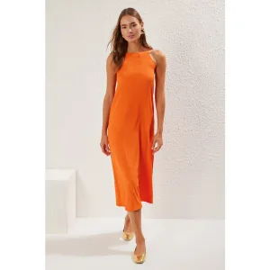 Effen midi-jurk voor dames met spaghettibandjes, stijlvol en aansluitend model voor een avondje uit.